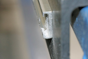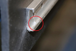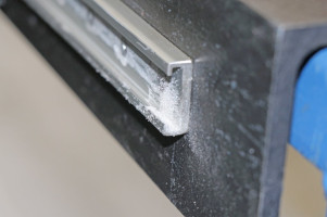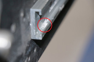 As we go further along in the test, more shavings can be seen gathering in the track’s sliding pathway. At 28000 cycles more dust has gatherd.